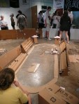Classical history geek that I am, I went this afternoon to the “24 Hour Roman Construction Project,” an art event in which participants build a replica of Rome in a day. Starting at midnight with the two huts of Romulus and Remus, volunteers make structures, well, more or less to scale.