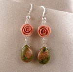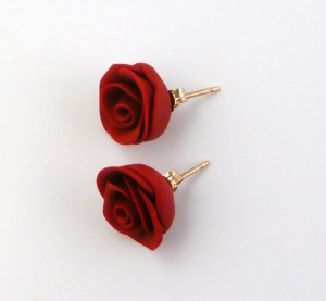 The roses are made from polymer clay; I shape them and then bake them with the earring parts molded in. They’re very sturdy and I can make any color in the rainbow. The colors are actually a large part of the appeal for me; I love mixing and blending, and I also am such a rose enthusiast that I really enjoy making the little buds and petals.