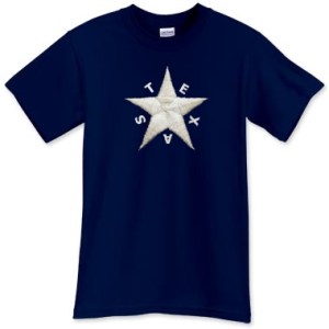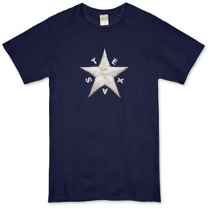 To me, this is easily the most beautiful of the early Texas flags… if it really existed. Some say it was designed by Lorenzo de Zavala, Texas’ first vice president and a drafter of her constitution. Others say it was invented nearly a century later. Even the Texas Almanac says there’s “no historical evidence” for it, while noting that it’s flown in Texas to this day. Me, I think it makes a nice shirt that handsomely indicates your interest in Texas history; as they said in “The Man Who Shot Liberty Valance,” “When the legend becomes fact, print the legend.”