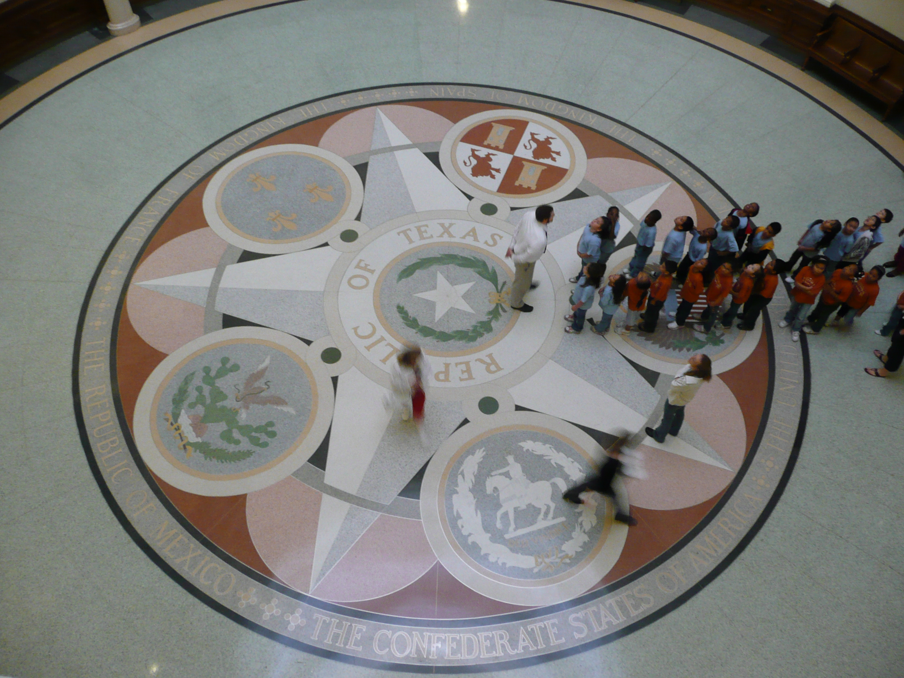 And I didn’t notice till I was going through my film that the star design way up there at the tippy-top is the star from the (disputed) De Zavala flag. Which fact I’ve of course now retconned into the sales pitch for my De Zavala flag T-shirt! A lovely shirt in very soft navy-blue cotton; I’m wearing mine right now, in fact.