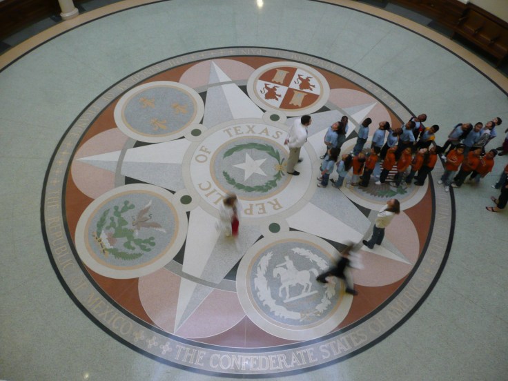 Actually, I went yesterday. But I wanted to get a photo of the San Jacinto battle flag, which I’m already at work making into one of my Texian Tees. (Here’s a photo that’s better — or at least more brightly lit — than the one I got.) It’s a good thing I went, though, because just a few hours later, I learned that the House chambers, where the flag hangs, will soon be closed until November as part of renovations to the Capitol.