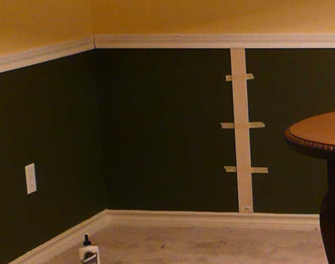 My fourth big tip: Tape a line on the wall first and eyeball it. If the height you’ve chosen looks strange, it’s easier to move tape than to repaint.