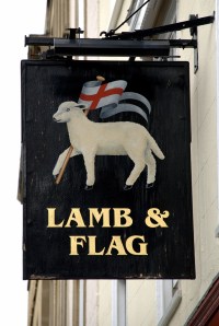 Though here’s a nice description, from the Chequers, in Cholsey: “The pub sign is mock heraldic with the head, wings and feet of an eagle sticking out of the sides of a chessboard. Intriguingly, the bottom-right-hand square is white, not black. I leave you to draw your own conclusions.” And the Crumpled Horn, in Heathfield Village: “The pub sign is a bull (with one horn crumpled) in a morning suit, leaning on a cane.”