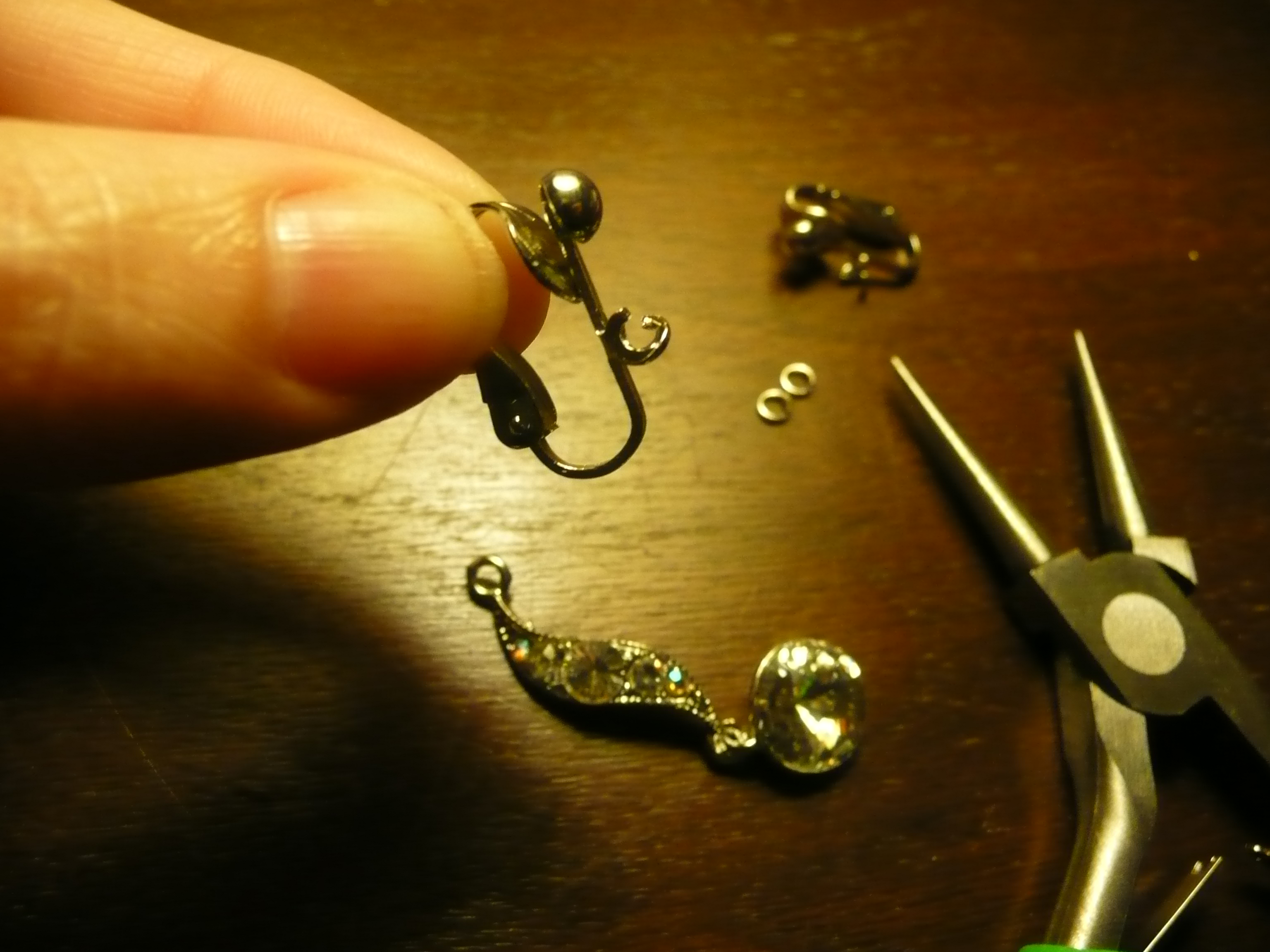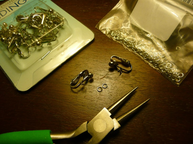 Tools: Read about the different kinds of jewelry pliers here. If you’re gonna make jewelry, you might need expensive ones or several kinds. But if all you’re going to do is repair or alter a few earrings, I think a cheap pair of roundies will do you fine.