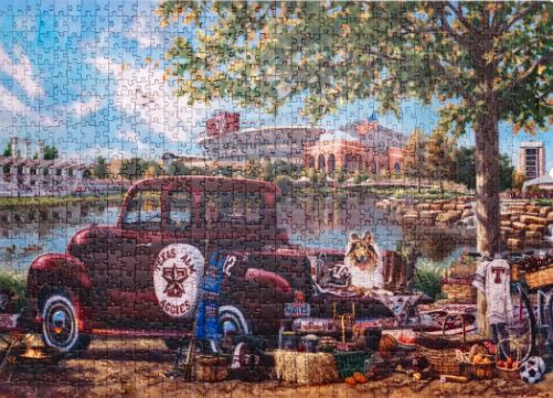 Texas A&M’s McFerrin Center for Entrepreneurship hosts students’ startups and small businesses in their Student Marketplace. 12th Brand branding irons support Brazos Valley veterans; Memory Team will convert your prized DVD, cassette, Hi 8, V8 or VHS memories to digital format; JigSaw ‘Em Off puzzles benefit OnRamp; Aggieland Aces‘ playing cards benefit the Aggieland Humane Society; and Maroon & Metal trinkets benefit the Brazos Valley Food Bank.