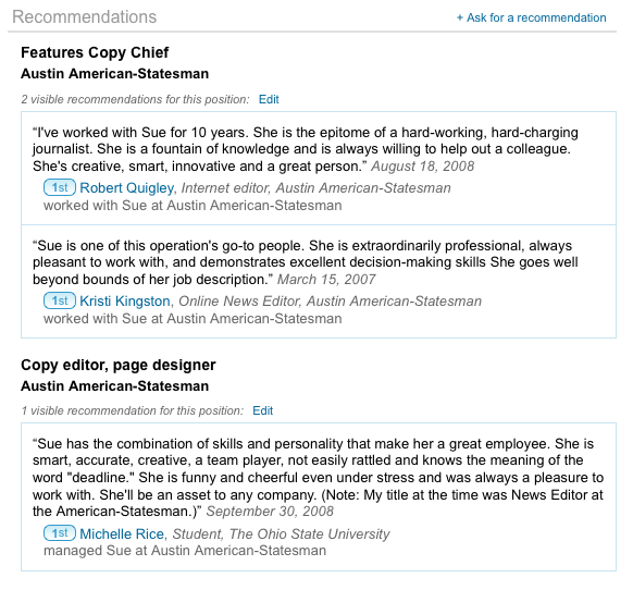 My colleagues were nice enough to write me a few recommendations on LinkedIn: